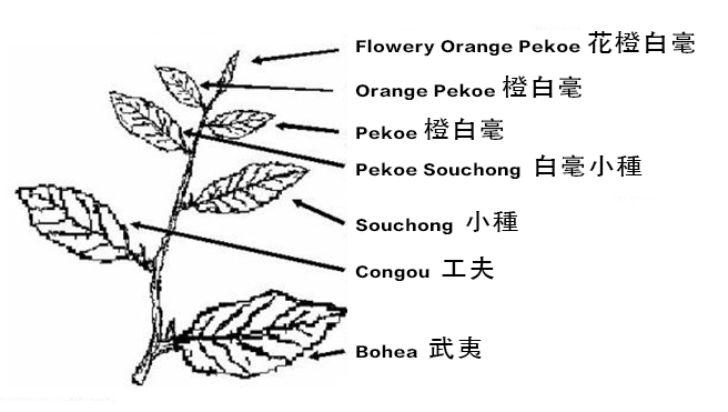 | 小種 | Souchong (S) | 茶枝最頂起數的第五片葉 |